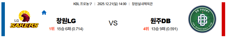12월21일 창원LG:원주DB KBL컵 분석 및 예측 스포츠중계:스포츠무료중계