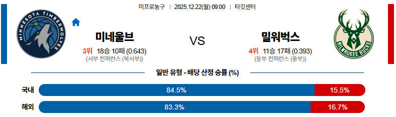 12월22일 미네소타:밀워키 NBA 분석 및 예측 스포츠중계:스포츠무료중계