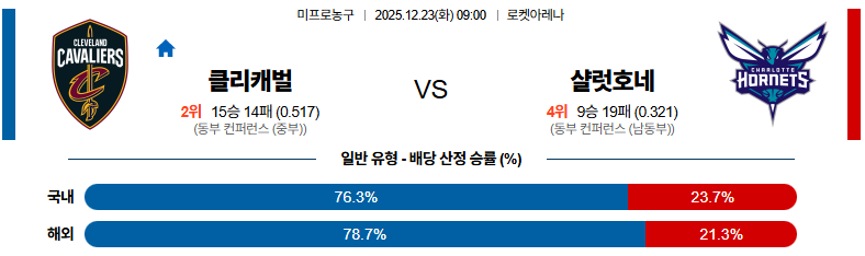 12월23일 클리블랜드:샬럿 NBA 분석 및 예측 스포츠중계:스포츠무료중계