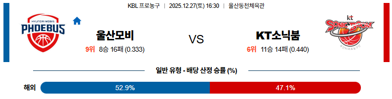 12월27일 울산모비스:수원KT KBL 분석 및 예측 스포츠중계:스포츠무료중계