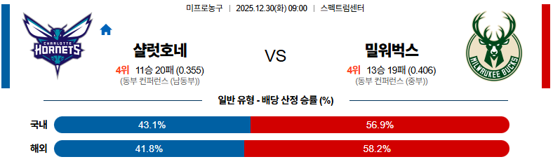 12월30일 샬럿:밀워키 NBA 분석 및 예측 스포츠중계:스포츠무료중계
