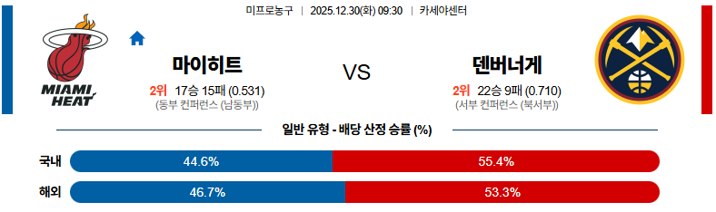 12월30일 마이애미:덴버 NBA 분석 및 예측 스포츠중계:스포츠무료중계