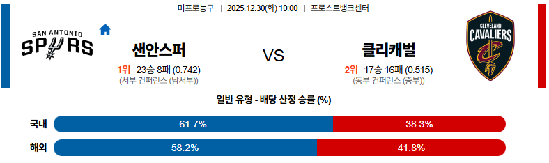 12월30일 샌안토니오:클리블랜드 NBA 분석 및 예측 스포츠중계:스포츠무료중계