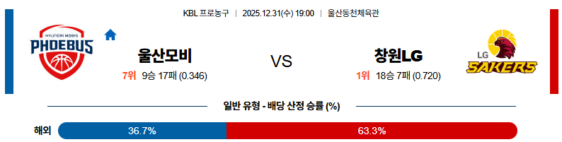 12월31일 울산모비스:창원LG KBL 분석 및 예측 스포츠중계:스포츠무료중계