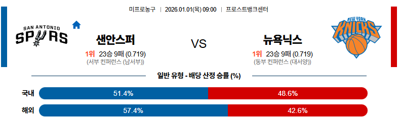 01월01일 샌안토니오:뉴욕 NBA 분석 및 예측 스포츠중계:스포츠무료중계
