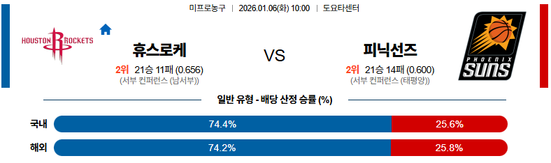 01월06일 휴스턴:피닉스 NBA 분석 및 예측 스포츠중계:스포츠무료중계