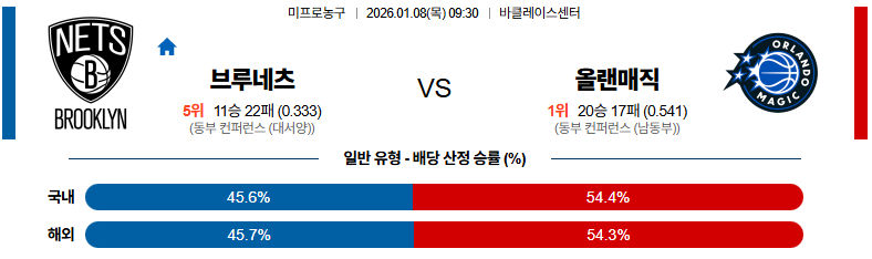 01월08일 브루클린:올랜도 NBA 분석 및 예측 스포츠중계:스포츠무료중계