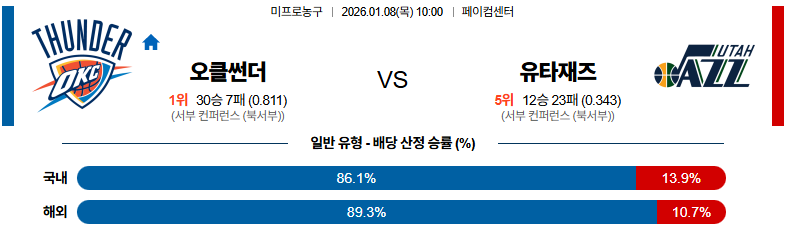 01월08일 오클라호마시티:유타 NBA 분석 및 예측 스포츠중계:스포츠무료중계