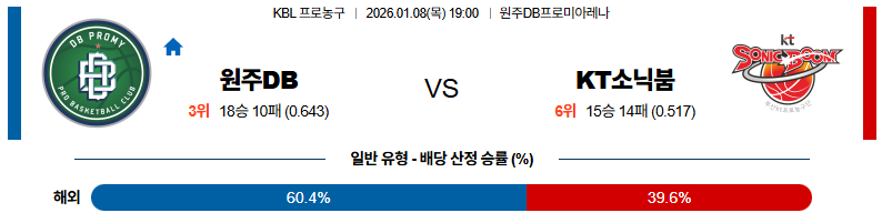 01월08일 원주DB:수원KT KBL 분석 및 예측 스포츠중계:스포츠무료중계