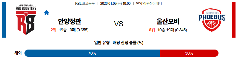 01월09일 안양정관장:울산모비스 KBL 분석 및 예측 스포츠중계:스포츠무료중계