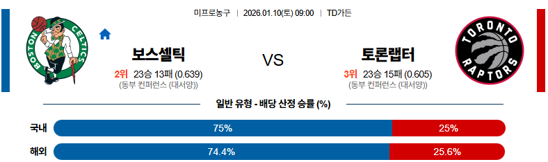 01월10일 보스턴:토론토 NBA 분석 및 예측 스포츠중계:스포츠무료중계