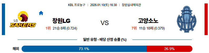 01월10일 창원LG:고양소노 KBL 분석 및 예측 스포츠중계:스포츠무료중계
