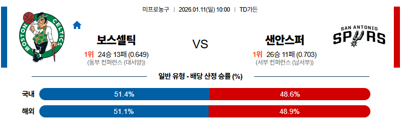01월11일 보스턴:샌안토니오 NBA 분석 및 예측 스포츠중계:스포츠무료중계