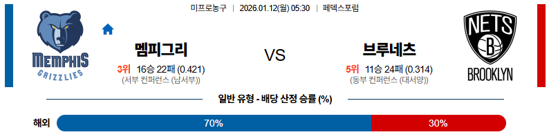 01월12일 멤피스:브루클린 NBA 분석 및 예측 스포츠중계:스포츠무료중계