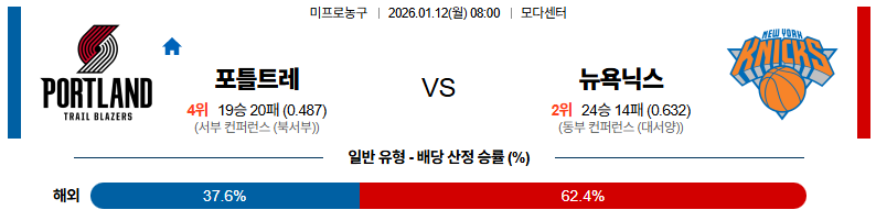 01월12일 포틀랜드:뉴욕 NBA 분석 및 예측 스포츠중계:스포츠무료중계