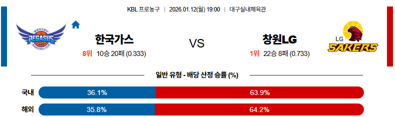 01월12일 대구가스공사:창원LG KBL 분석 및 예측 스포츠중계:스포츠무료중계