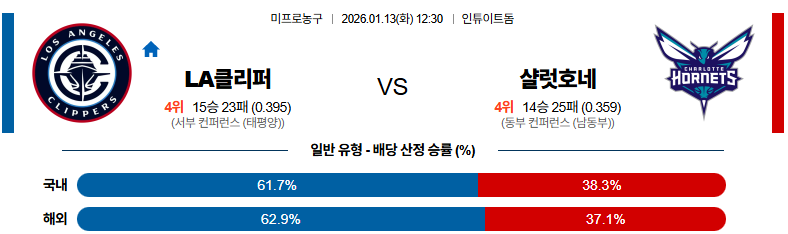 01월13일 LA클리퍼스:샬럿 NBA 분석 및 예측 스포츠중계:스포츠무료중계