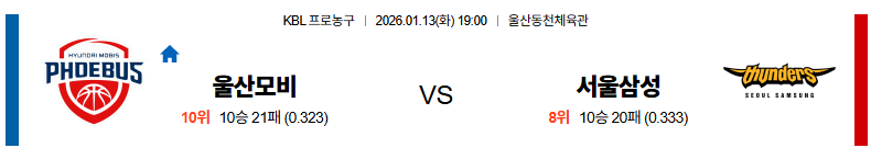 01월13일 울산모비스:서울삼성 KBL 분석 및 예측 스포츠중계:스포츠무료중계