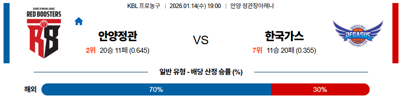 01월14일 안양정관장:대구가스공사 KBL 분석 및 예측 스포츠중계:스포츠무료중계
