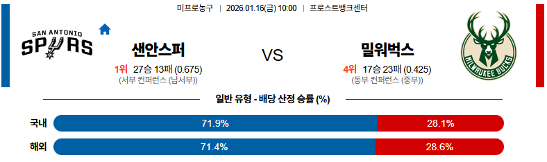 01월16일 샌안토니오:밀워키 NBA 분석 및 예측 스포츠중계:스포츠무료중계