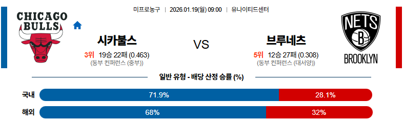 01월19일 시카고:브루클린 NBA 분석 및 예측 스포츠중계:스포츠무료중계
