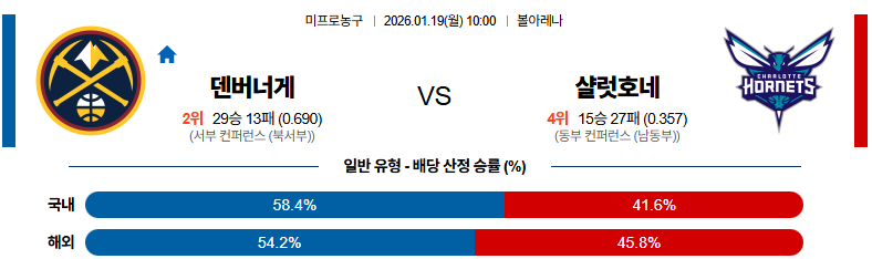 01월19일 덴버:샬럿 NBA 분석 및 예측 스포츠중계:스포츠무료중계
