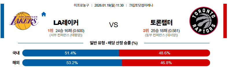 01월19일 LA레이커스:토론토 NBA 분석 및 예측 스포츠중계:스포츠무료중계
