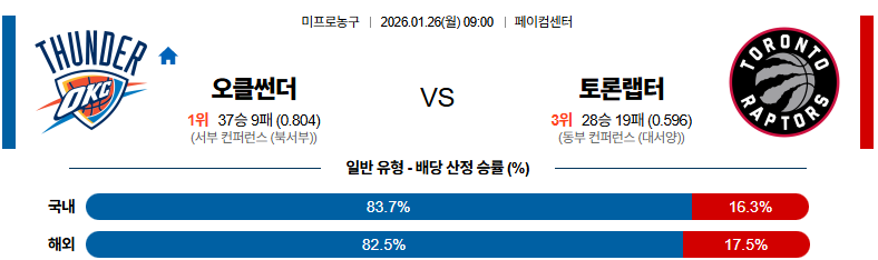 01월26일 오클라호마시티:토론토 NBA 분석 및 예측 스포츠중계:스포츠무료중계