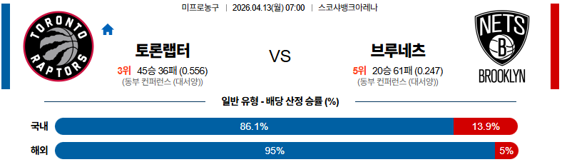 04월13일 토론토:브루클린 NBA 분석 및 예측 스포츠중계:스포츠무료중계