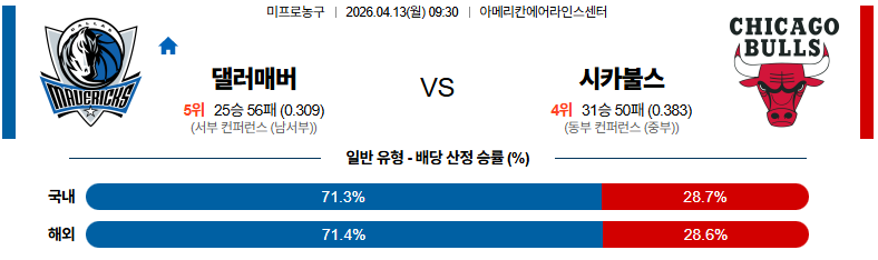 04월13일 댈러스:시카고 NBA 분석 및 예측 스포츠중계:스포츠무료중계
