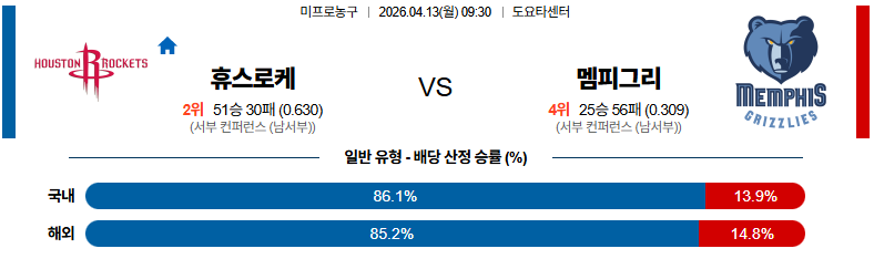 04월13일 휴스턴:멤피스 NBA 분석 및 예측 스포츠중계:스포츠무료중계