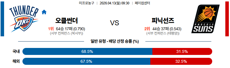 04월13일 오클라호마시티:피닉스 NBA 분석 및 예측 스포츠중계:스포츠무료중계