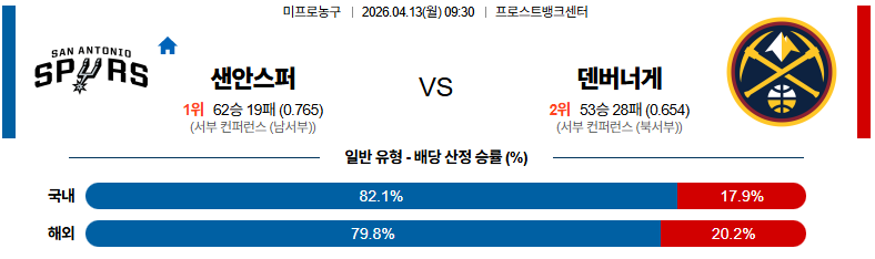 04월13일 샌안토니오:덴버 NBA 분석 및 예측 스포츠중계:스포츠무료중계