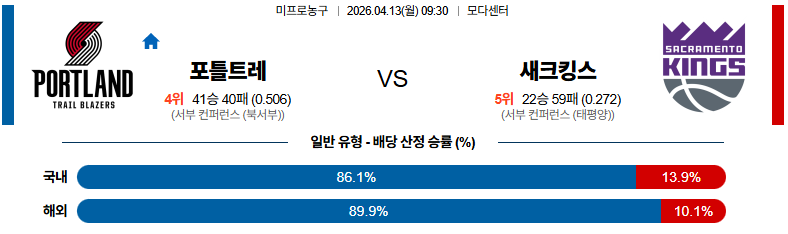 04월13일 포틀랜드:새크라멘토 NBA 분석 및 예측 스포츠중계:스포츠무료중계