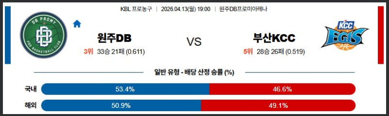 04월13일 원주DB:부산KCC KBL 분석 및 예측 스포츠중계:스포츠무료중계