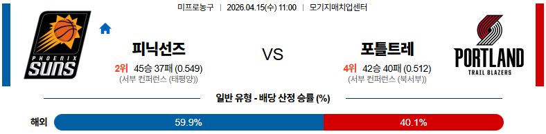 04월15일 피닉스:포틀랜드 NBA 분석 및 예측 스포츠중계:스포츠무료중계