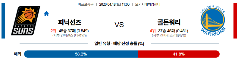 04월18일 피닉스 : 골든스테이 NBA 분석 및 예측 스포츠중계,스포츠분석