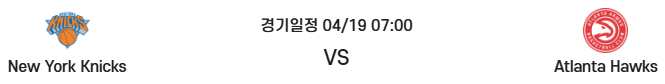2026-04-19 [NBA] 뉴욕 닉스 VS 애틀랜타 호크스 분석