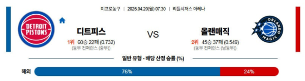 04월20일 디트로이트 : 올랜도 NBA 분석 및 예측 스포츠중계,스포츠분석