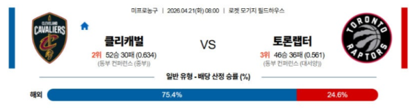 04월21일 클리블랜드 : 토론토 NBA 분석 및 예측 스포츠중계,스포츠분석