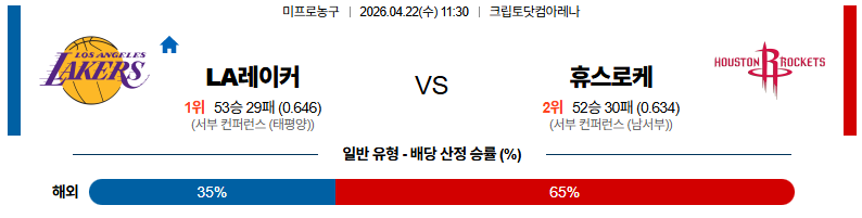 04월22일 LA레이커스 : 휴스턴 NBA 분석 및 예측 스포츠중계,스포츠분석