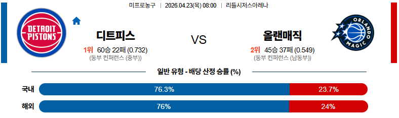04월23일 디트로이트 : 올랜도 NBA 분석 및 예측 스포츠중계,스포츠분석