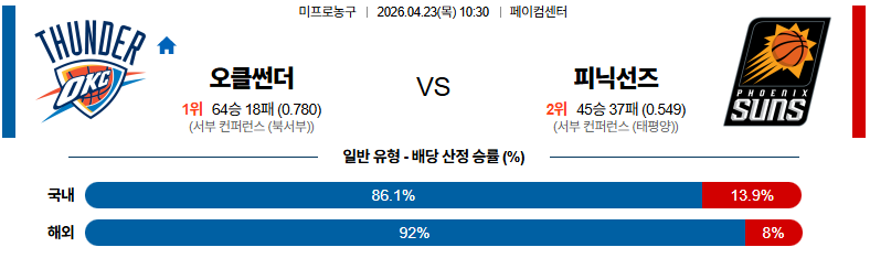 04월23일 오클라호마 : 피닉스 NBA 분석 및 예측 스포츠중계,스포츠분석
