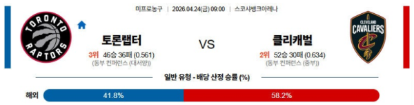 04월24일 토론토 : 클리블랜드 NBA 분석 및 예측 스포츠중계,스포츠분석