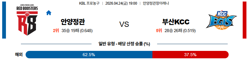 04월24일 안양정관장 : 부산KCC KBL 분석 및 예측 스포츠중계,스포츠분석