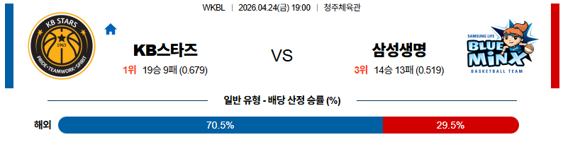 04월24일 KB스타즈 : 삼성생명 WKBL 분석 및 예측 스포츠중계,스포츠분석