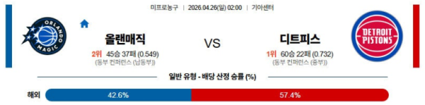 # 홈팀 : 올랜도(45승37패)