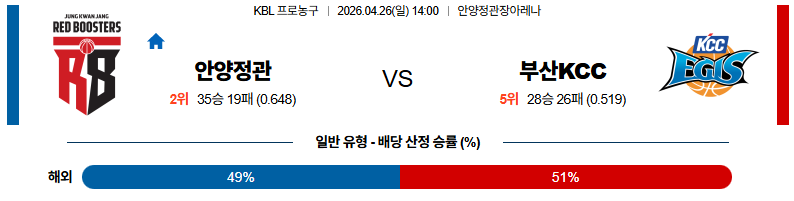 04월26일 안양정관장:부산KCC KBL 분석 및 예측 스포츠중계:스포츠무료중계