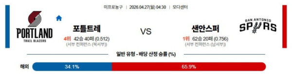 04월27일 포틀랜드 : 샌안토니오 NBA 분석 및 예측 스포츠중계,스포츠분석