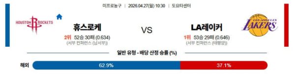 04월27일 휴스턴 : LA레이커스 NBA 분석 및 예측 스포츠중계,스포츠분석